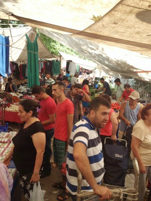 Deniz börülcesi (called samphire in English but literally sea cowpea in Turkish) is a type of marsh weed readily available around Burgaz Island. One can find it growing on the sidewalks in this area actually. I witnessed a couple of Kurdish women scraping it up in to some plastic bags today, apparently to cook it later. Our batch, however, was purchased at Friday's open-air market and is fresh (and not scraped off a sidewalk). It is stiff and looks like seaweed when it is uncooked.